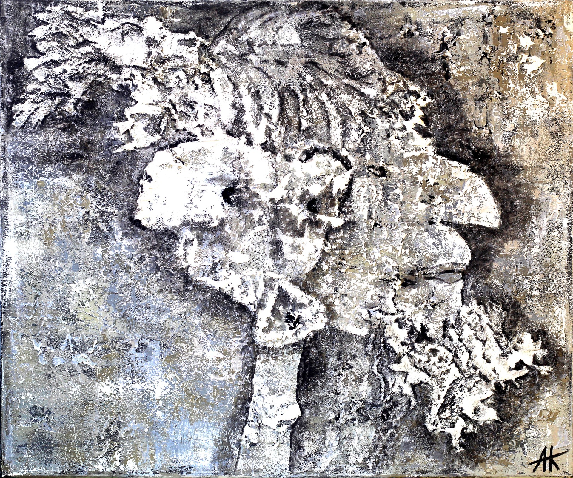 The painting portrays a regal figure, adorned not in jewels but in the resilience of her spirit. Her gaze, a mix of wisdom and longing, reflects the weight of her legacy in a rapidly evolving world. Her elegance transcends eras, echoing the timeless quest for identity and purpose.